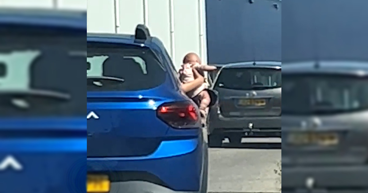 Dat was even schrikken voor omstanders in IJmuiden. Een bijrijder van een blauwe Dacia deed het raam open tijdens het rijden en stak vervolgens een ‘baby’ uit het raam. Het werd gefilmd en op Dumpert gezet.